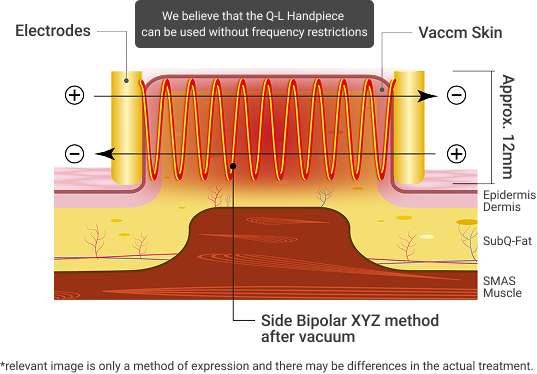 The technology of Q-L handpiece sucks skin fat in a vacuum and creates a three-dimensional shape of the fat.