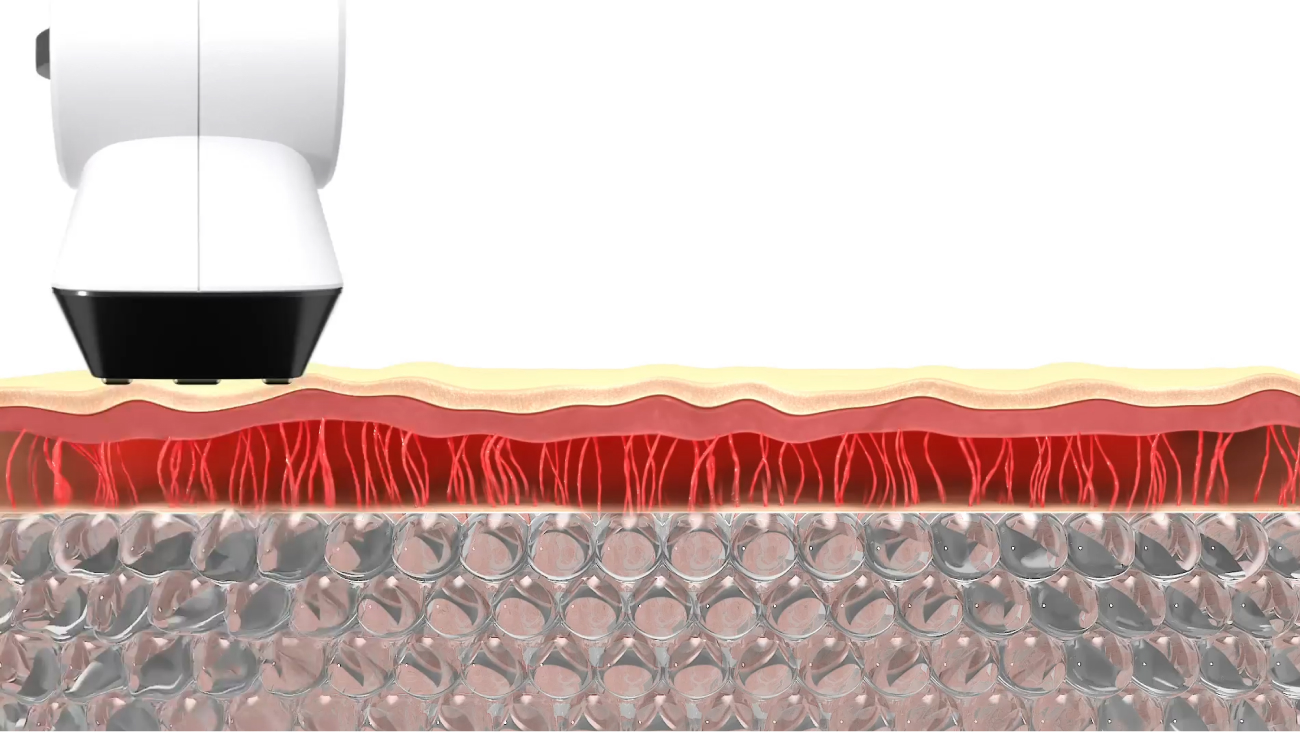 During vacuum suction, the skin is pulled up to a maximum of approx.